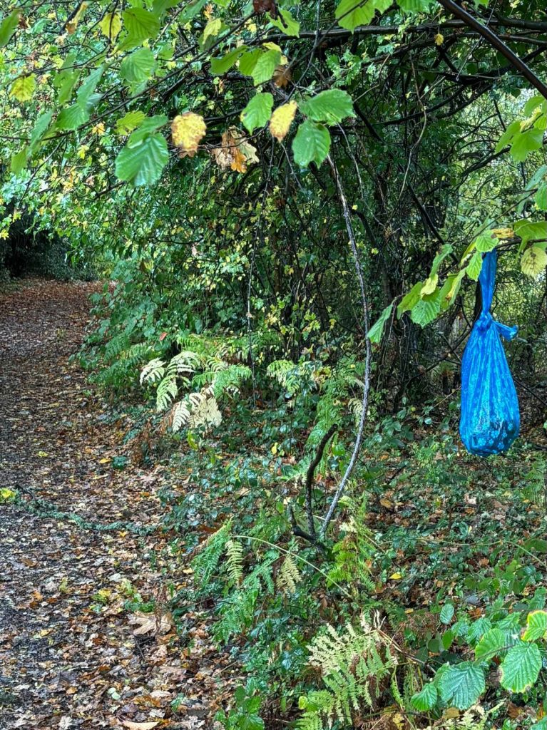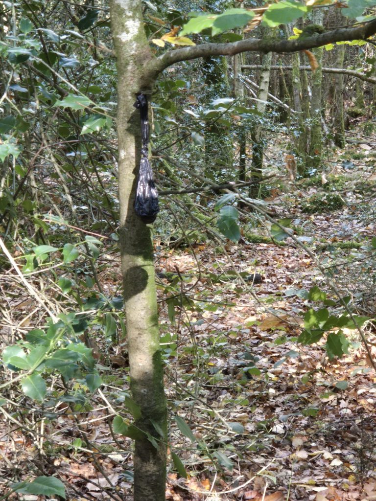 A resident and daily user of Alice Holt Forest has contacted us to voice their concern regarding the increasing presence of dog poo bags festooned from trees and bushes and on the pathways.